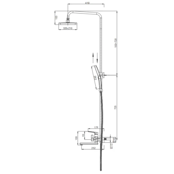 Душевая система Splenka S30.24.06 320x210 мм, со смесителем, черный матовый
