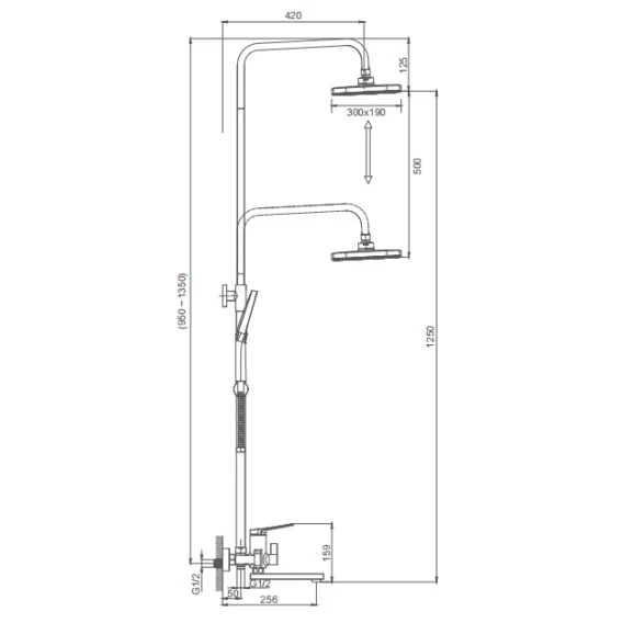 Душевая система Splenka S40.24.07 300x190 мм, со смесителем, серый матовый