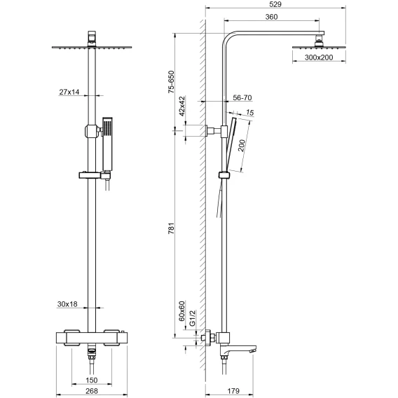 Аэратор, Металлическая розетка, Эксцентрики, Душевой шланг, Душевая лейка, Держатель для душевой лейки, Верхний душ, Кронштейн, Штанга душевая, Термостат