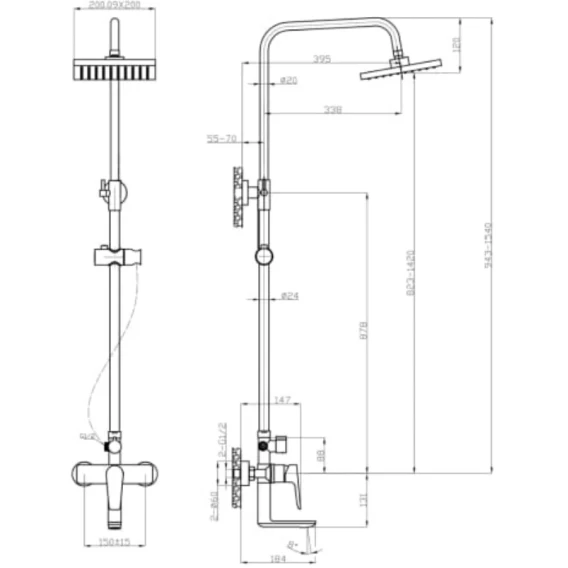 Аэратор, Металлическая розетка, Эксцентрики, Душевой шланг, Душевая лейка, Держатель для душевой лейки, Верхний душ, Смеситель, Кронштейн, Штанга душевая