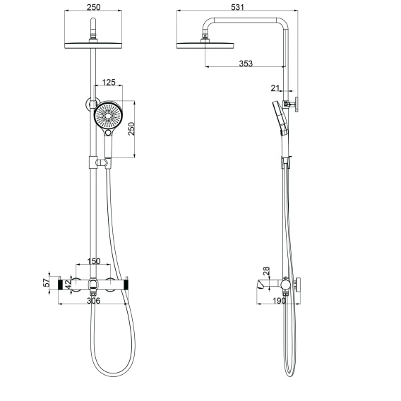 Душевая система Vincea Rim VSFS-2RM1MB 250 мм, со смесителем, черный матовый