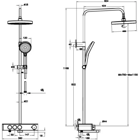 Аэратор, Эксцентрики, Душевой шланг, Душевая лейка, Держатель для душевой лейки, Полочка, Верхний душ, Кронштейн, Штанга душевая, Термостат