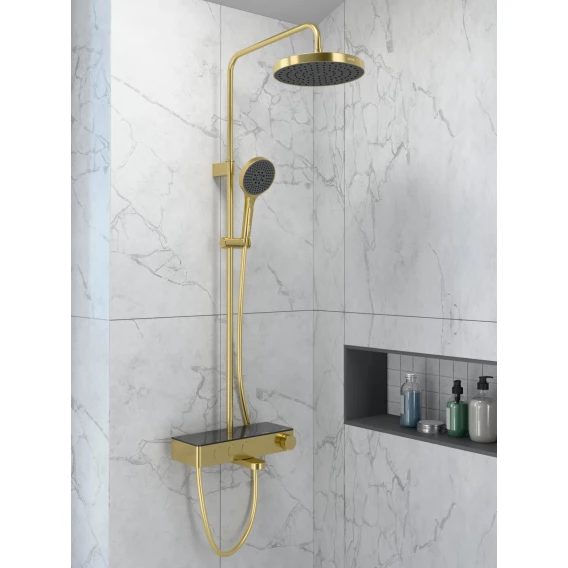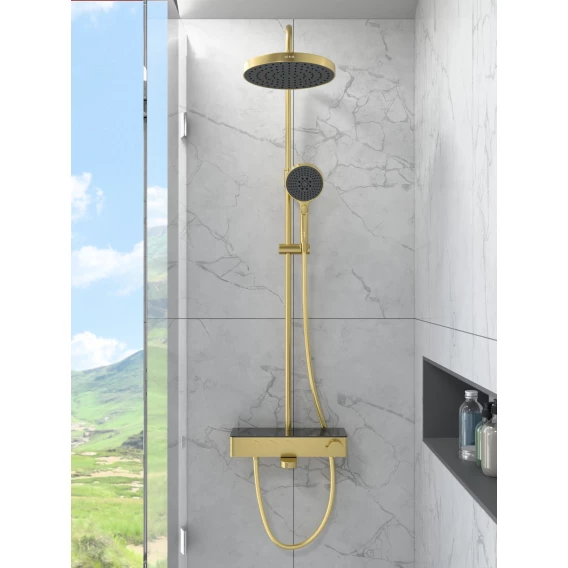 Душевая система VitrA Core Round A4730925EXP 250 мм, с термостатом, золотой матовый