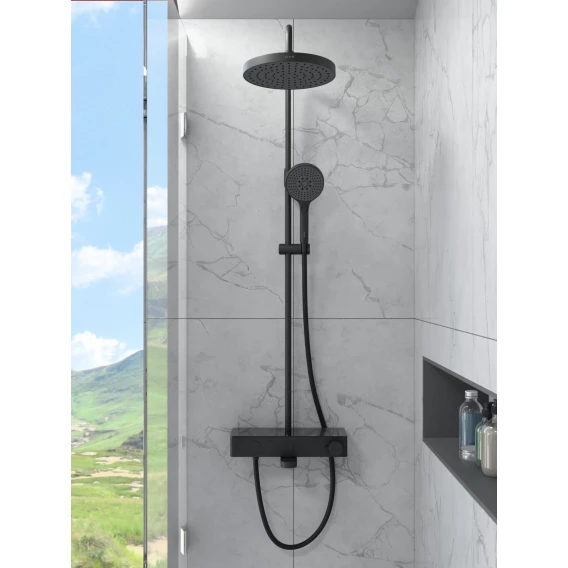 Душевая система VitrA Core Round A4730936EXP 250 мм, с термостатом, черный матовый