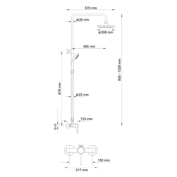 ХарактеристикиДушевой комплект с насадкой «Ливневый дождь»Входит в комплектДушевая насадка Ø 208 мм, 80 форсунок, ABS-пластикСтойка для душа, Ø 25мм регулируемая по высотеЛейка 1-функциональная с системой защиты от известковых отложенийШланг металлический 1500 мм, подключение к лейкеСмеситель для душаКерамический картридж 35мм, Sedal (Испания)Регулируемый держатель лейкиНабор для монтажа