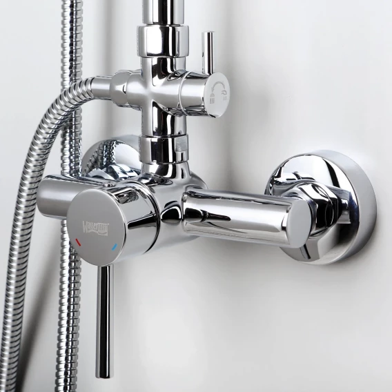 Металлическая розетка, Эксцентрики, Душевой шланг, Душевая лейка, Держатель для душевой лейки, Верхний душ, Смеситель, Кронштейн