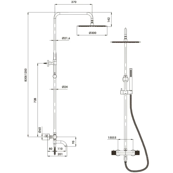 • Стойка для душа, Ø 24 мм, регулируемая по высоте