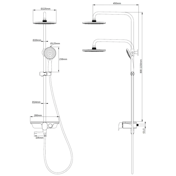 Душевая система WeltWasser DP 1020 CR 10000003184 225 мм, со смесителем, хром