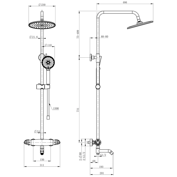 Аэратор, Металлическая розетка, Эксцентрики, Душевой шланг, Душевая лейка, Держатель для душевой лейки, Верхний душ, Кронштейн, Штанга душевая, Термостат