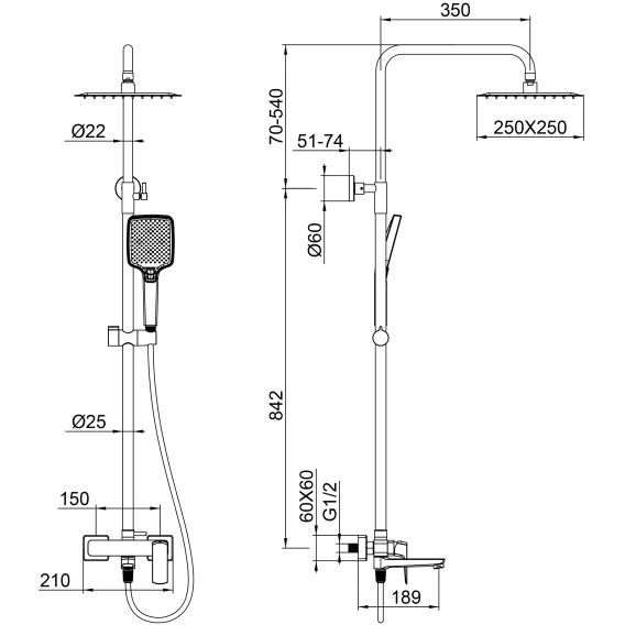Душевая система Wonzon & Woghand Forza WW-739031-BN 250 мм, со смесителем, никель матовый