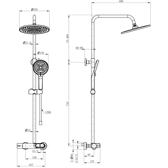 Душевая система Wonzon & Woghand Muse Corno WW-B2091-A-MW 255 мм, с термостатом, белый матовый
