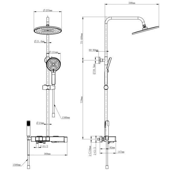 Аэратор, Металлическая розетка, Эксцентрики, Душевой шланг, Душевая лейка, Держатель для душевой лейки, Полочка, Верхний душ, Кронштейн, Штанга душевая, Термостат