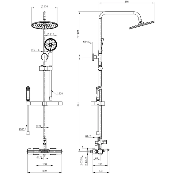 Душевая система Wonzon & Woghand Plate WW-C3017-A1-CR 230 мм, с термостатом, хром