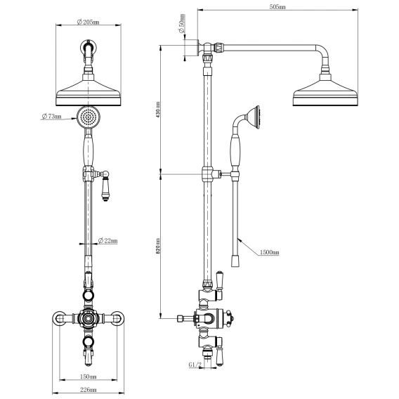 Душевая система Wonzon & Woghand Retro WW-B3041-BGG 205 мм, со смесителем, темный графит матовый