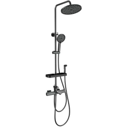 Одна из немногих душевых систем, где есть сразу: тропический душ, обычная душевая лейка, душевая лейка гигиенического душа, нормального размера гусак (смеситель) и полка. Дополнительно докупал удлинитель тропического душа.