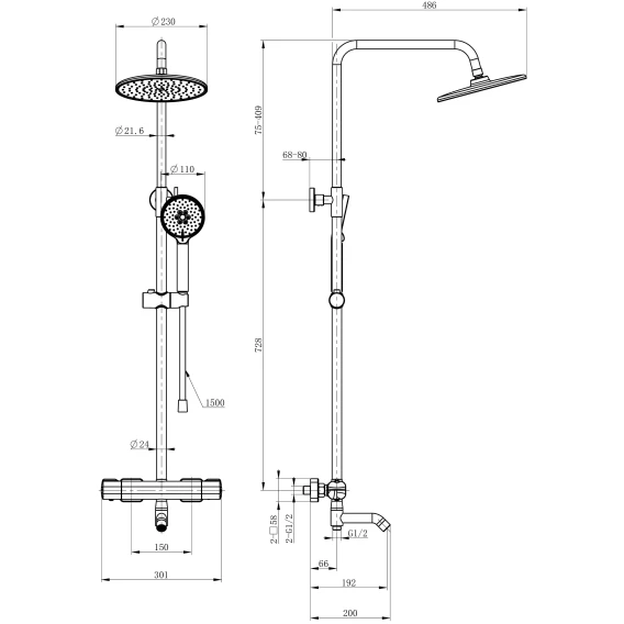 Диаметр верхнего душа