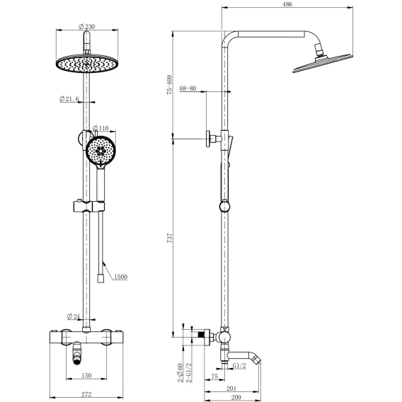 Диаметр верхнего душа