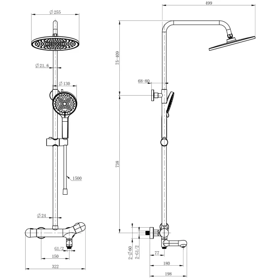 Душевая система Wonzon & Woghand WW-B3057-A-CR 255 мм, с термостатом, хром