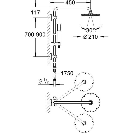 • переключение с ручного душа на верхний посредством системы Grohclick