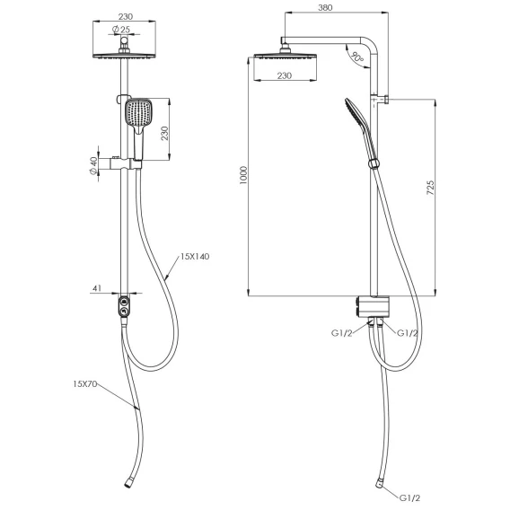 Душевой шланг, Душевая лейка, Держатель для душевой лейки, Верхний душ, Кронштейн, Мыльница, Штанга душевая