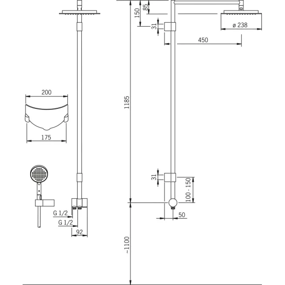 Тип душа Душевая стойка