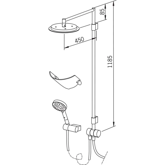 Душевой шланг, Душевая лейка, Держатель для душевой лейки, Мыльница