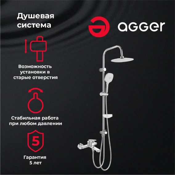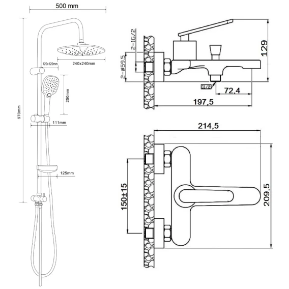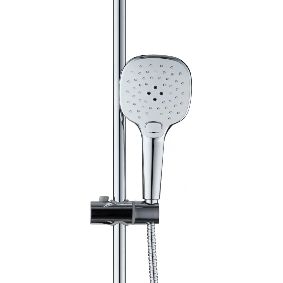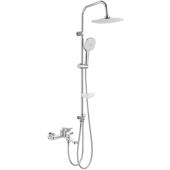 Аэратор, Металлическая розетка, Эксцентрики, Душевой шланг, Душевая лейка, Держатель для душевой лейки, Верхний душ, Смеситель, Кронштейн, Мыльница, Штанга душевая