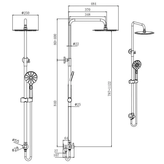 Душевая стойка 250 мм Aquatek Reno AQ2046MB
