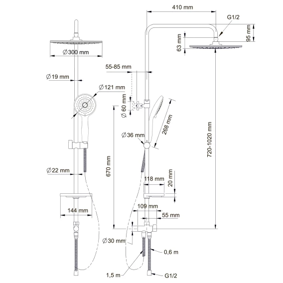 Душевой шланг, Душевая лейка, Держатель для душевой лейки, Верхний душ, Кронштейн, Мыльница, Штанга душевая