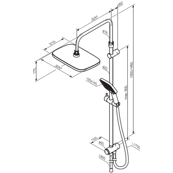 Душевая стойка 300x210 мм Damixa Gala 953000300