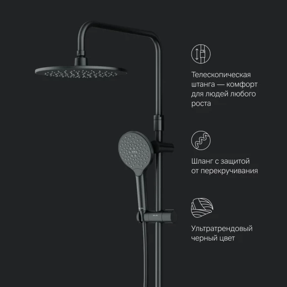 Душевая стойка Am.Pm Like F0780022 220 мм, черный матовый