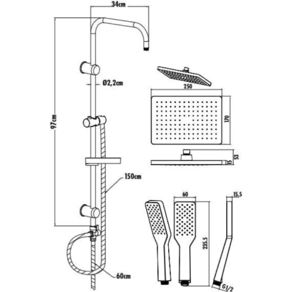 Душевая стойка Creavit SH630 250x170 мм, хром
