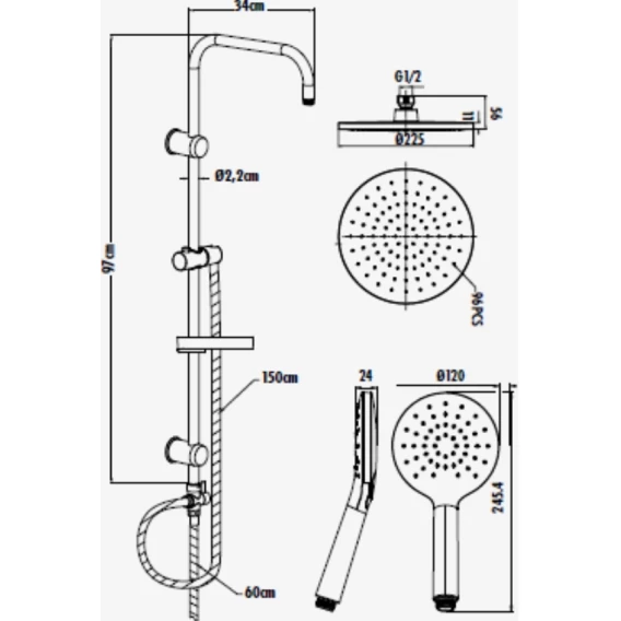 Душевой шланг, Душевая лейка, Держатель для душевой лейки, Верхний душ, Кронштейн, Мыльница, Штанга душевая