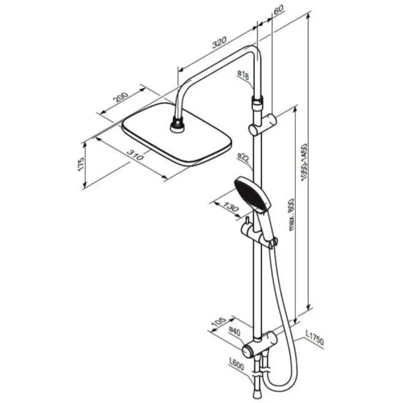 Душевая стойка Damixa Merkur 940000000 300x210 мм, хром