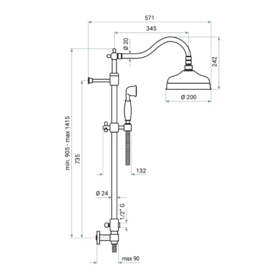 Душевая стойка Emmevi C02594IBR 200 мм, бронза