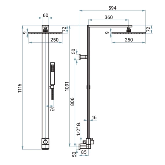 Душевая стойка Emmevi C03046ICR 250 мм, хром
