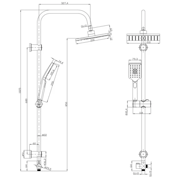 Душевая стойка G.Lauf UST-1090YB 210 мм, черный матовый