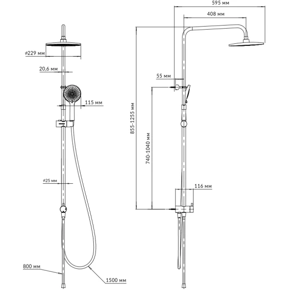 Душевой шланг, Душевая лейка, Держатель для душевой лейки, Верхний душ, Кронштейн, Штанга душевая
