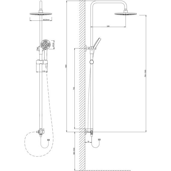 Душевой шланг, Душевая лейка, Держатель для душевой лейки, Верхний душ, Кронштейн, Штанга душевая