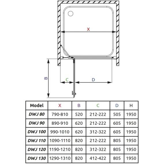Душевая дверь Radaway Almatea DWJ 130 L прозрачное