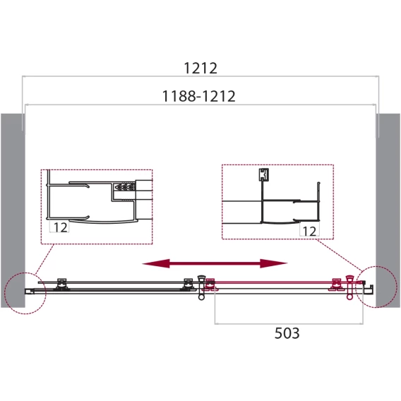 Душевая дверь 120 см BelBagno UNO-195-BF-1-120-C-NERO прозрачное