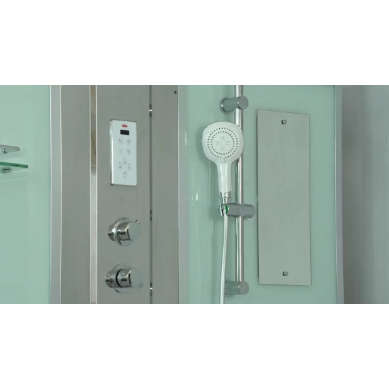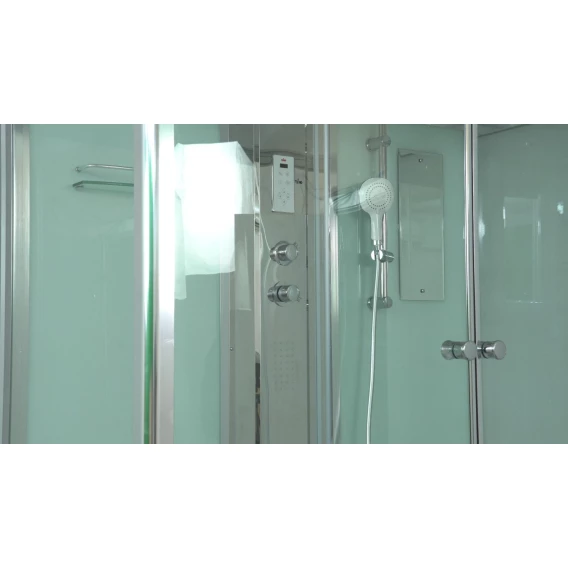 Душевой шланг, Душевая лейка, Держатель для душевой лейки, Подключение для душевого шланга, Полочка, Ручки, Верхний душ, Металлический каркас, Подголовник, Сиденье, Радио, Излив, Слив-перелив, Штанга душевая, Термостат, Ножки, Зеркало