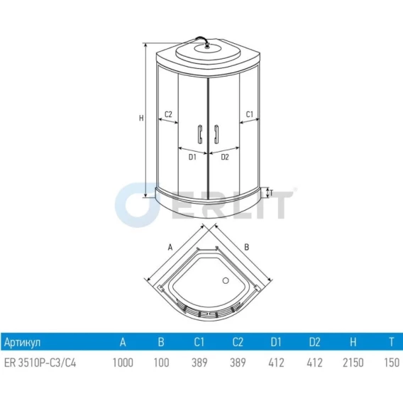 Душевая кабина 100×100×215 см Erlit Comfort ER3510P-C3-RUS