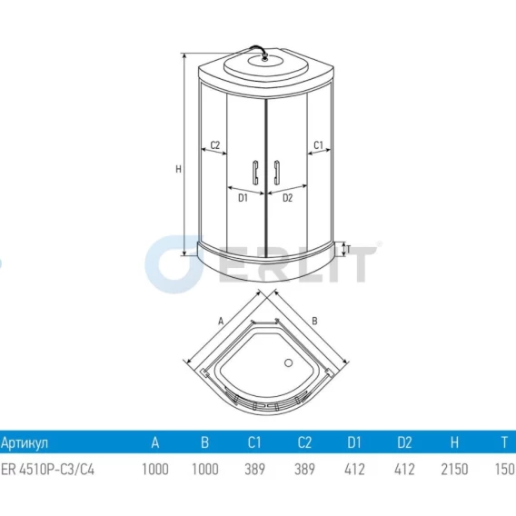 Душевая кабина 100×100×215 см Erlit Comfort ER4510P-C4