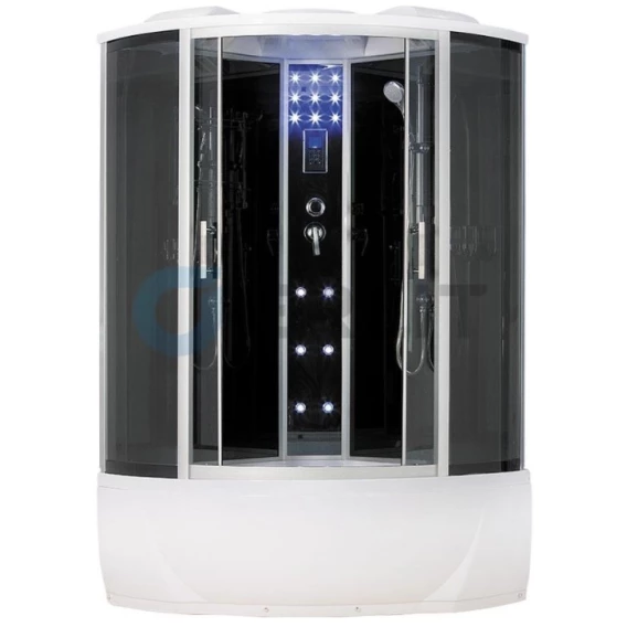 Душевой шланг, Душевая лейка, Держатель для душевой лейки, Полочка, Ручки, Подсветка, Верхний душ, Подсветка “Лунный свет”, Поддон, Сиденье, Радио, Смеситель, Сифон, Штанга душевая, Зеркало