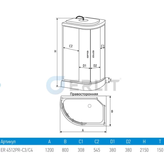 Душевая кабина 120×80×215 см Erlit Comfort ER4512PR-C4