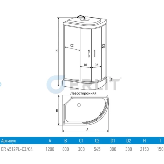 Душевая кабина 120×80×215 см Erlit Comfort ER4512PL-C3-RUS