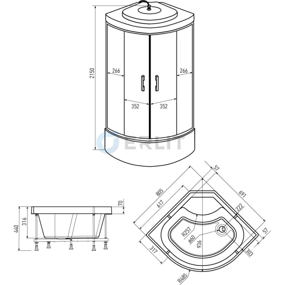 Душевая кабина 80,5×80,5×215 см Erlit Comfort ER3508TP-C4-RUS