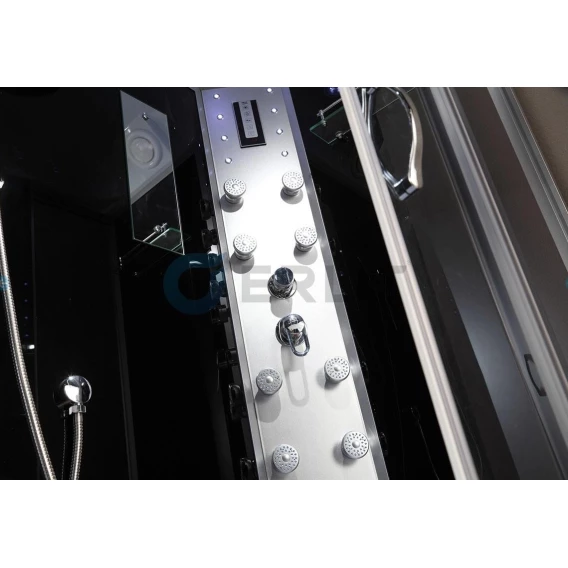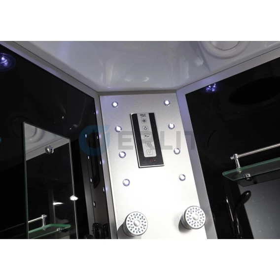 Душевой шланг, Душевая лейка, Держатель для душевой лейки, Полочка, Ручки, Подсветка, Верхний душ, Подсветка “Лунный свет”, Поддон, Радио, Смеситель, Сифон, Штанга душевая, Зеркало