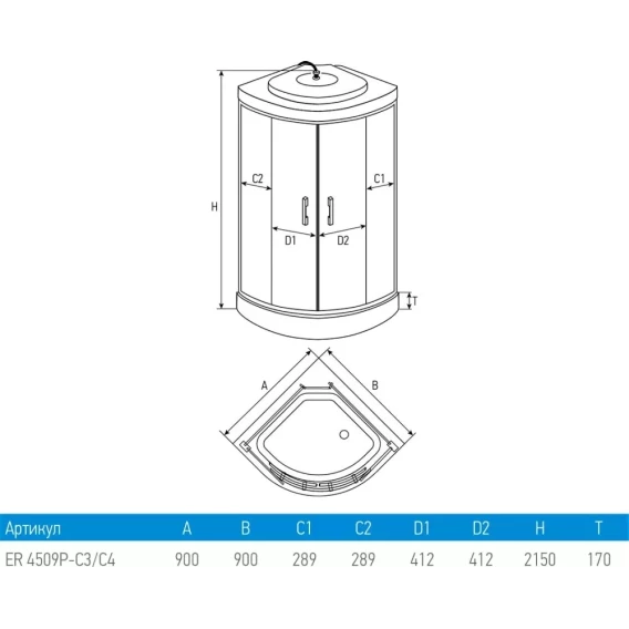 Душевая кабина 90×90×215 см Erlit Comfort ER4509P-C3-RUS